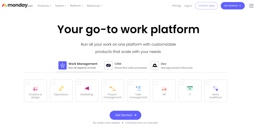 A monday.com például rengeteg funkciót kínál, így rögtön a főcím alatt végig lehet kattintgatni, hogy melyik kategórián belül mit tud az app. Röviden, tömören. Ők is sztrímlájnolnak, de legalább adnak támpontot ahhoz, hogy amúgy ez mit jelent a gyakorlatban.
